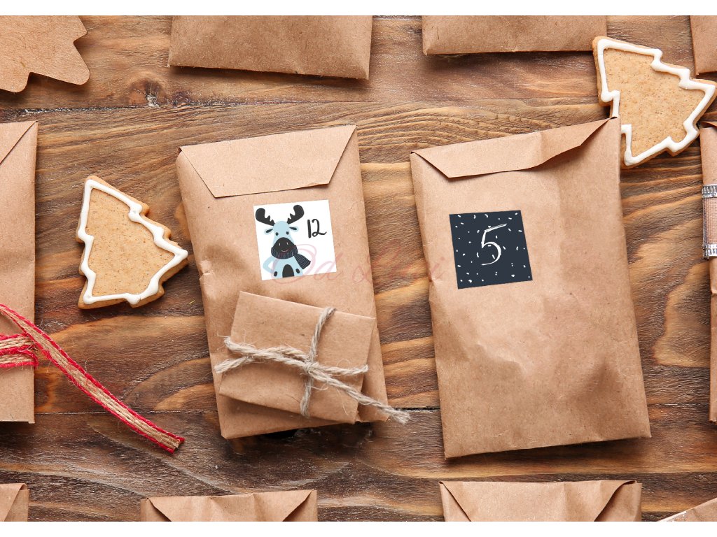 Tvoříte dětem vlastní adventní kalendář s balíčky nebo malými dárečky? Pak jsou tyto nálepky vhodné přímo pro vás! Můžete vybírat ze dvou barevných variant.