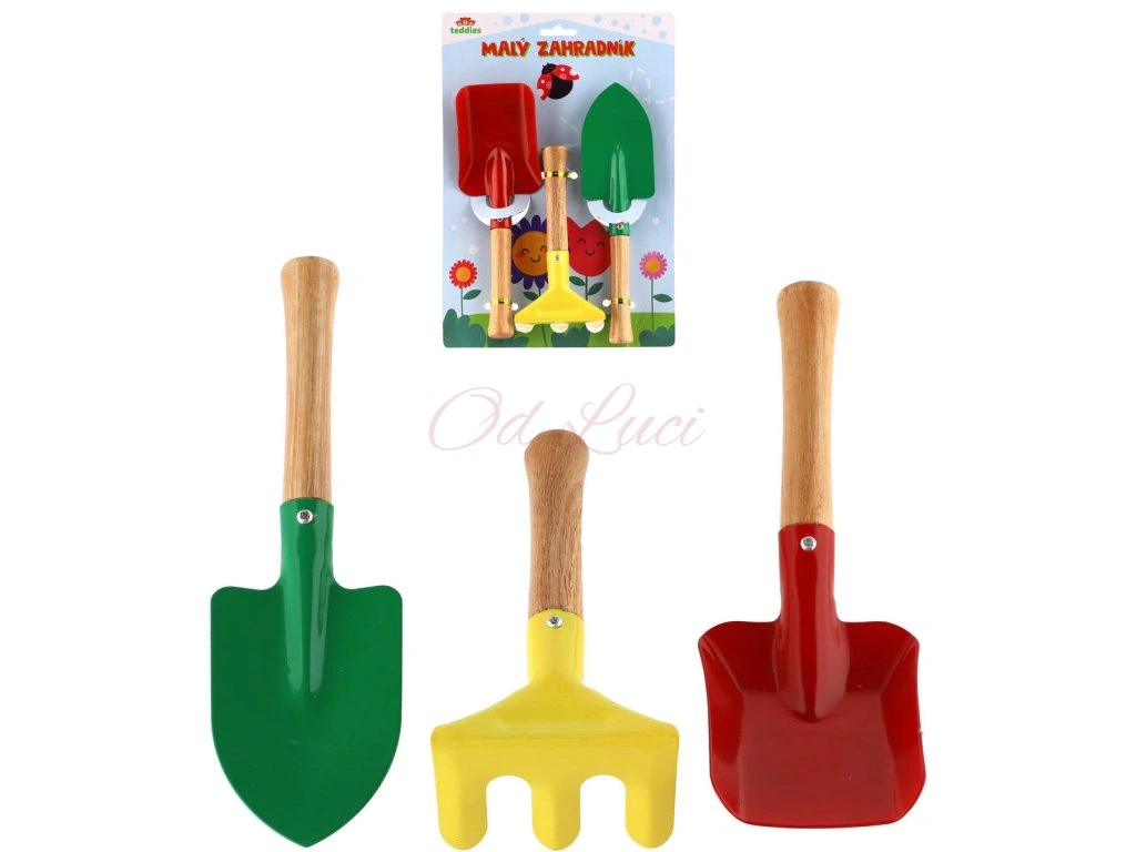 Sada zahradního nářadí je ideální venkovní hračkou, se kterou se děti hezky zabaví. V setu naleznou lopatičku, hrábě a rýč. Rozměr nářadí je cca 20cm. Nářadí je vyrobeno z kovu, rukojeť je dřevěná a pohodlně se v malých dětských rukou drží. Se zahradním nářadím vám děti mohou pomoci připravit zahradu na jaro, přesadit rostliny do květináčů nebo se jinak zapojit do práce na zahradě. Ideální pomocník pro malé zahrádkáře!