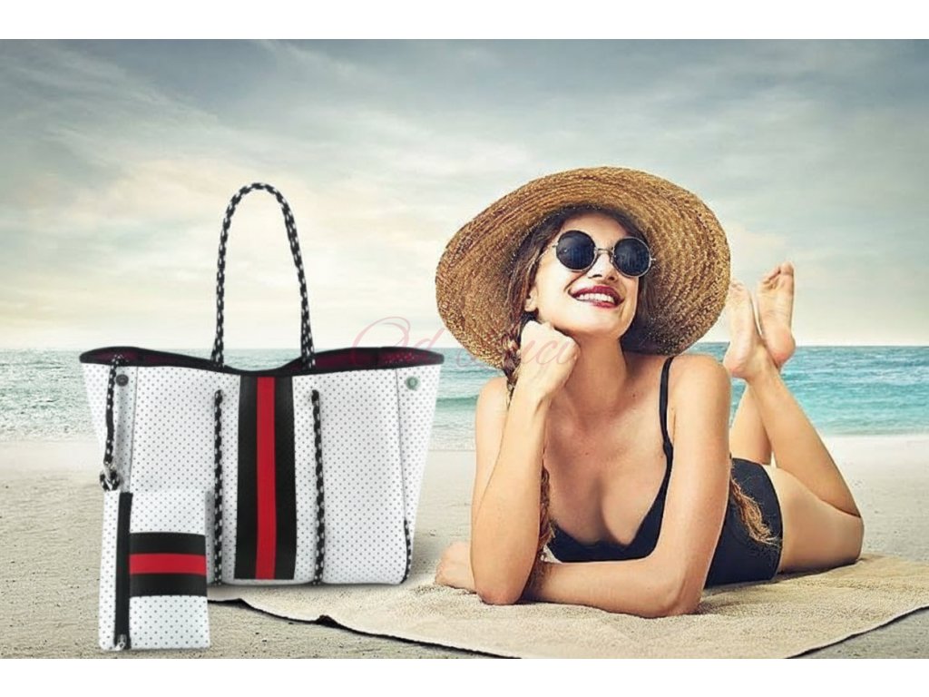Neoprenová dámská plážová taška voděodolná bílo-červená JG016