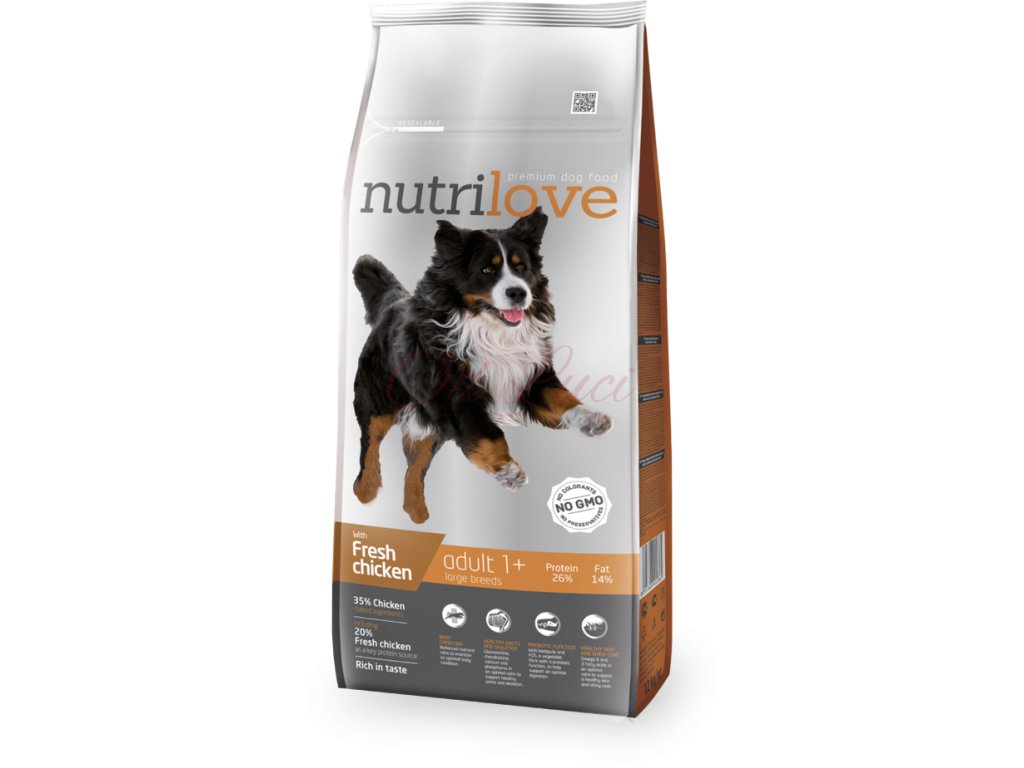 Nutrilove Dog Adult Large Breeds s čerstvým kuřecím 12kg