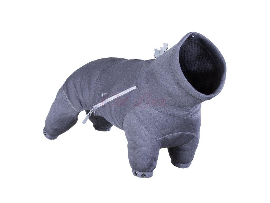 Konstrukce kombinézy na polozip umožňuje rychlé a snadné oblékání a svlékání. Na zadních a předních švech jsou integrované odrazky a navíc elegantní odnímatelná reflexní figurka pro větší bezpečnost v rušných městských oblastech, když je venku tma. Midlayer Overal slouží jako střední vrstva, ale je ideální také pro aktivní psy před a po výstavách, psích sportech a jiných namáhavých aktivitách.