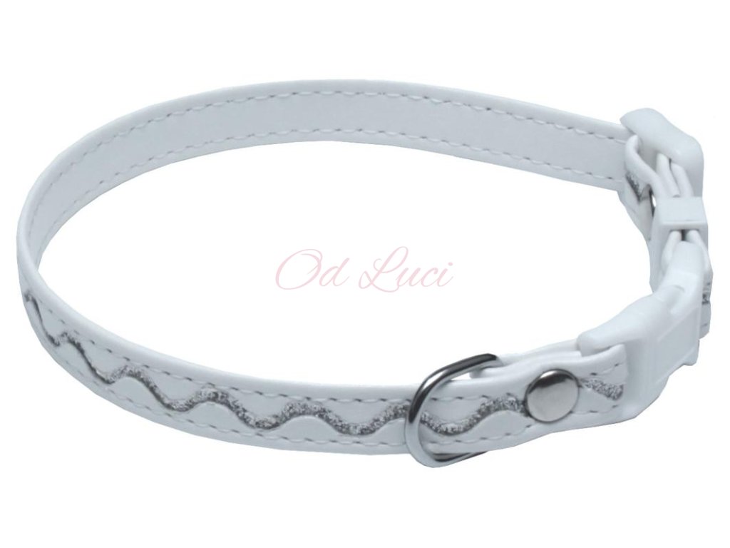 Obojek koženka stříbrné vlnky - bílý 1,2×20-35cm AKCE