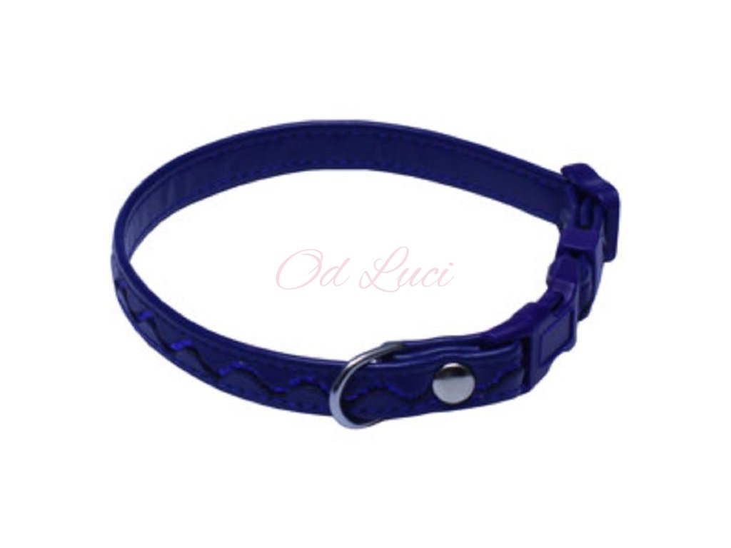 Obojek koženka stříbrné vlnky - tm.modrý 1,2×20-35cm AKCE