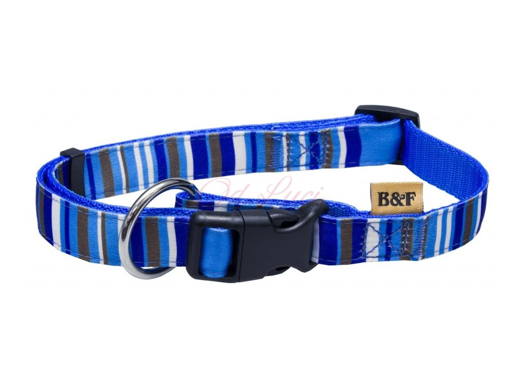 Obojek popruh proužky modrý 1,5×30-50cm
