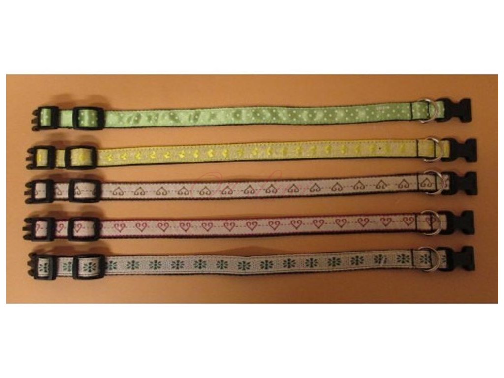 Zapínání na plastovou přezku. Jednoduchá nastavitelnost obvodu. Je vhodný pro malá a střední plemena.
