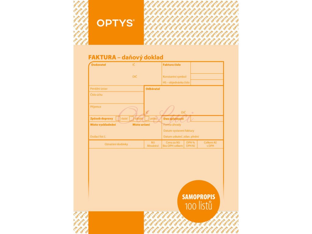 Optys 1072 faktura 100 listů NCR A5, samopropisující