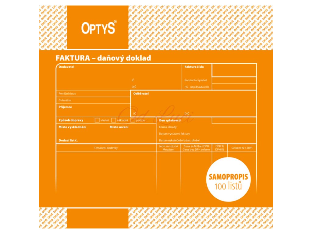 Optys 1074 faktura 20 cm x 21 cm 100 listů NCR, samopropisující