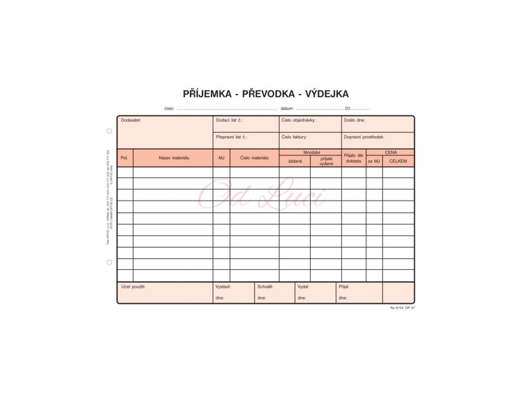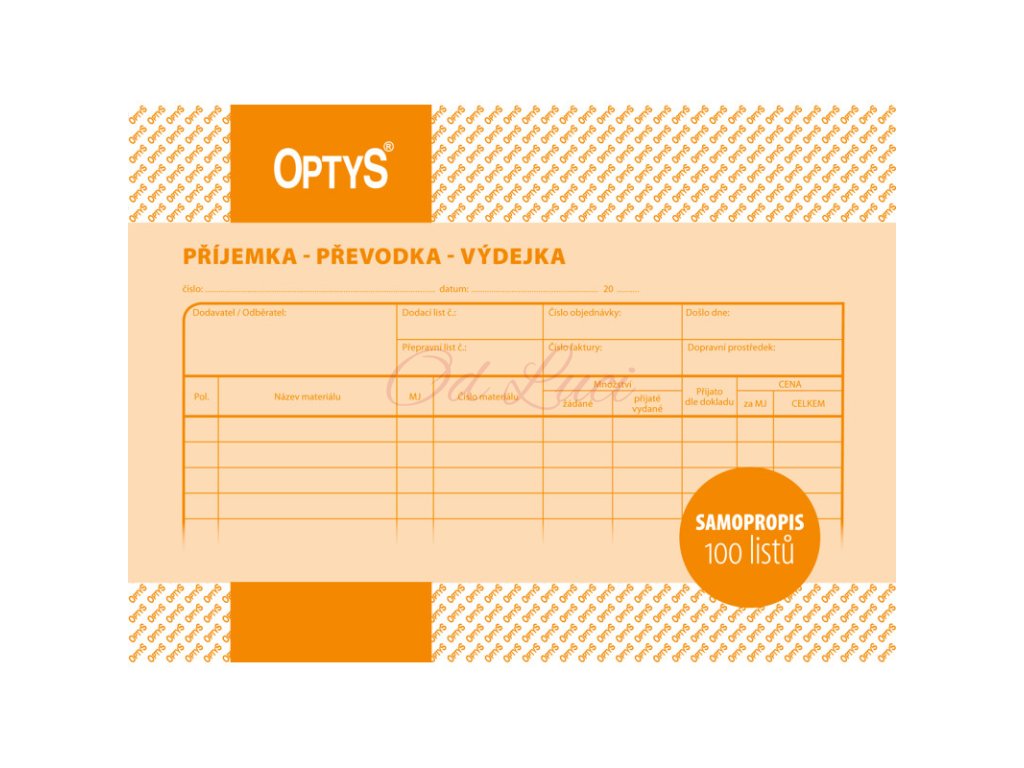 Optys 1087 příjemka - převodka - výdejka 100 listů NCR A5, samopropisující