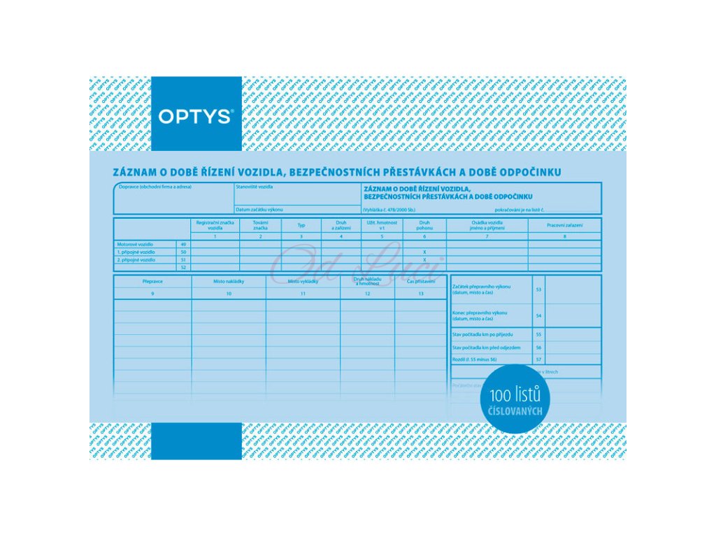 Optys 1166 záznam o provozu nákladního vozidla číslovaný A4, nepropisující