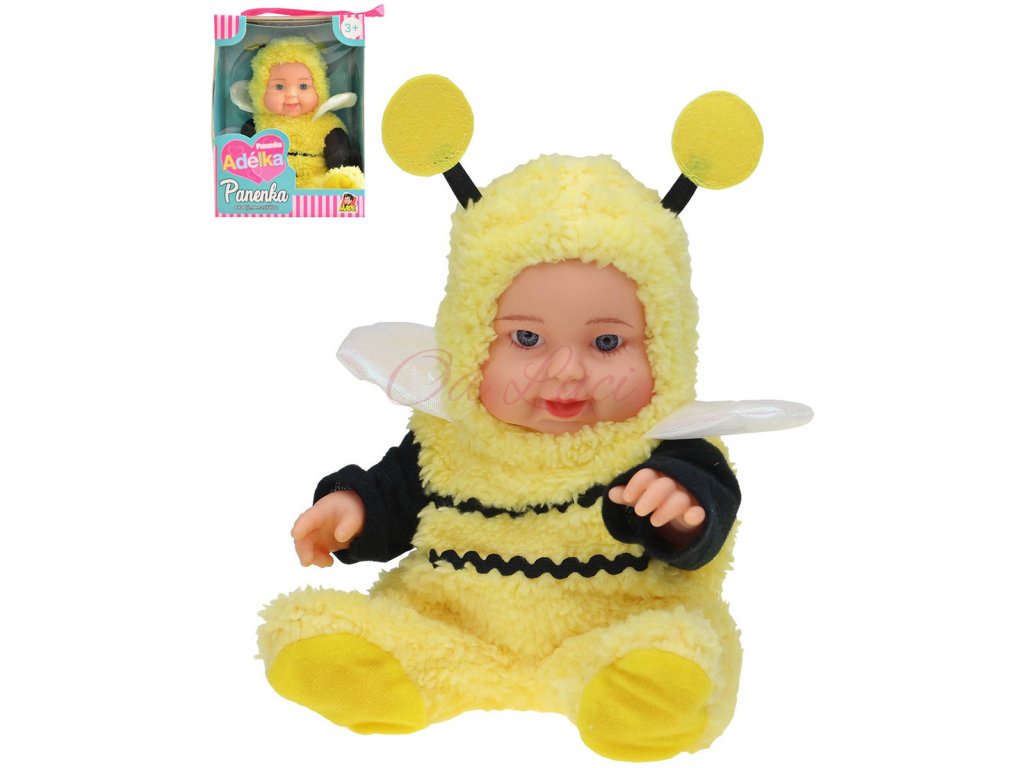 Panenka Adélka miminko v převleku jako zvířátko - včela. Tvrdé plastové tělíčko, obleček lze sundat, velikost 23cm, realistický vzhled.
