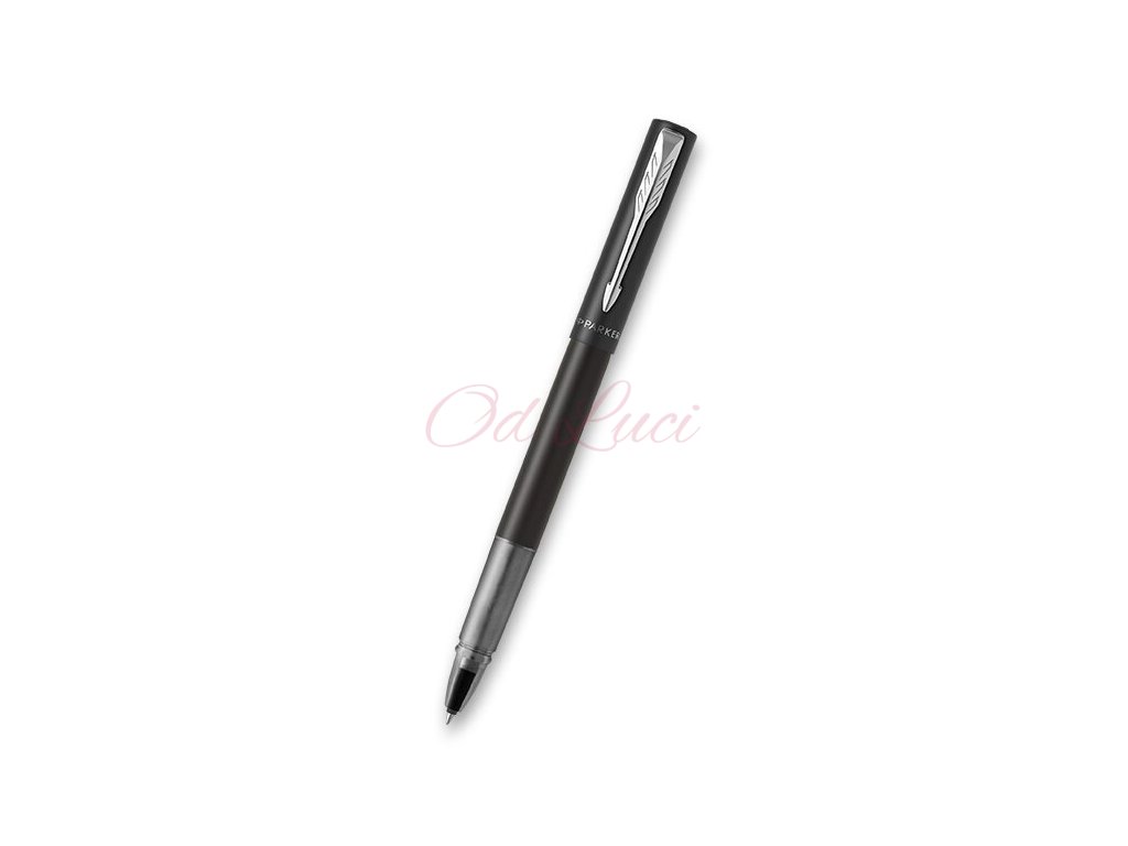 Roller Parker Vector XL s mosazným tělem a víčkem se saténovým metalickým lakem v kombinaci s chromovými doplňky. Úchopová část pera je transparentní.