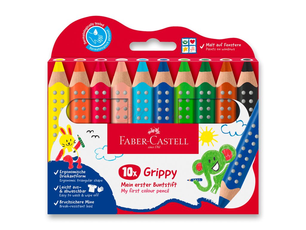 Sada kvalitních trojhranných pastelek Faber-Castell Grippy s patentovanou GRIP zónou v extra silném provedení.