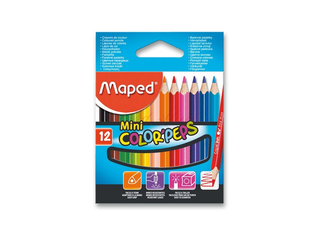Ergonomické pastelky ColorPeps mini mají trojhranné tělo pro lepší uchopení. Cestovní sada mini pastelek.