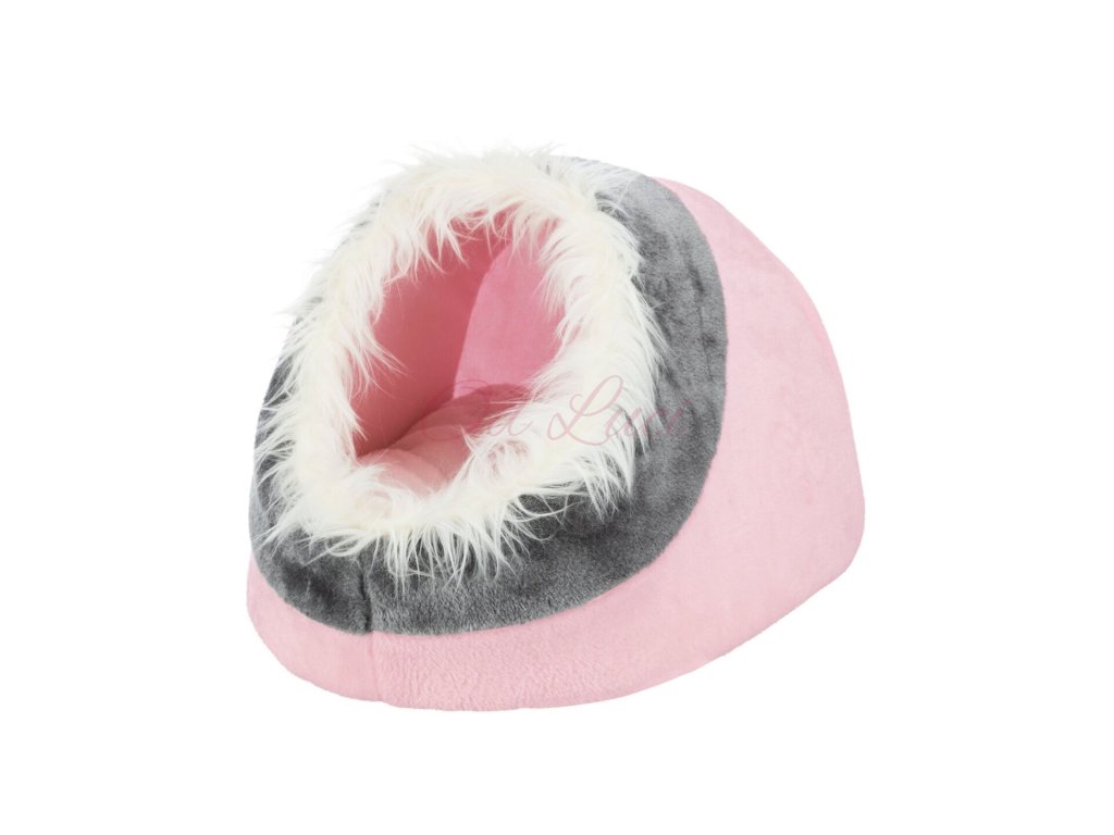 Pelech MINOU jeskyně s kožešinou 35×26×41cm růžová/šedá
