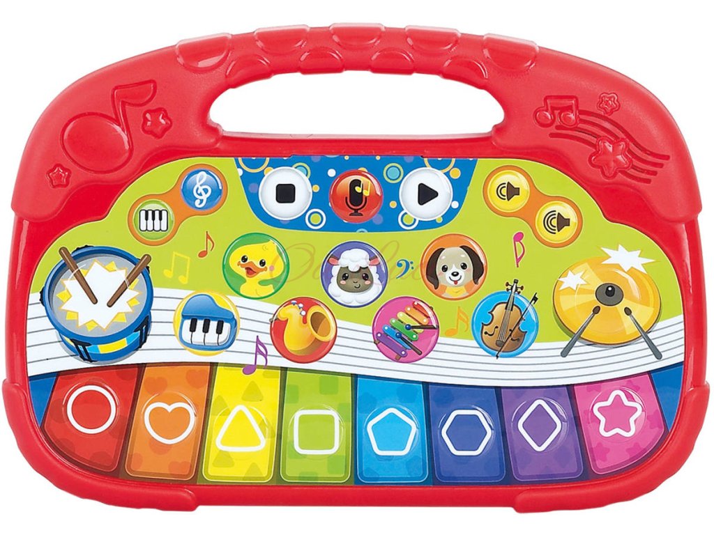 Baby dětské pianko, elektronický klavír se zvuky zvířátek, hudebních nástrojů, 8 klavírních not, 10 různých písní a funkcí nahrávání REC, pro ty nejmenší muzikanty. Hračka na baterie, se zvukem. Velikost 25cm.