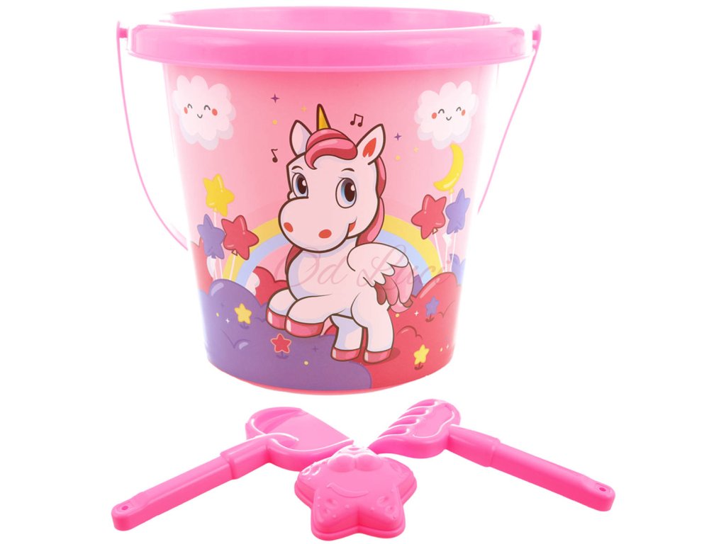 Pískový set kyblík 15cm se 2 nástroji a formičkou Jednorožec sada na písek 4ks
