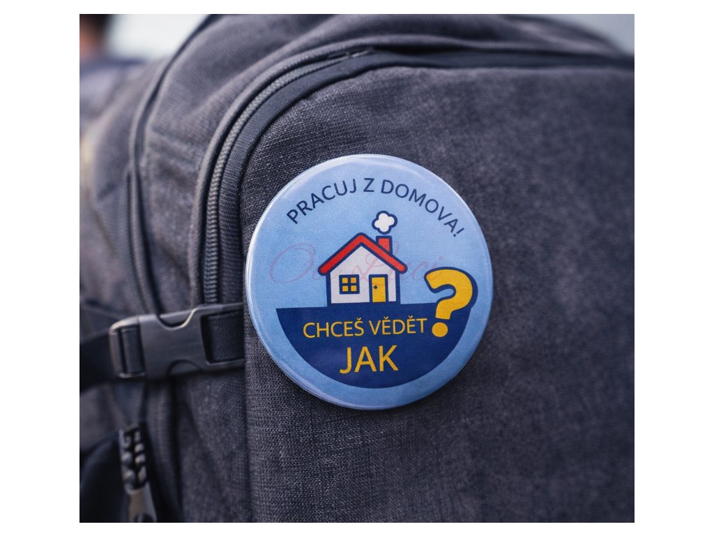Stačí ji připnout na batoh, kabelku, tašku nebo bundu a může se stát skvělým začátkem rozhovoru s lidmi, které zaujme myšlenka práce z domova.