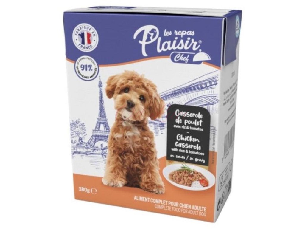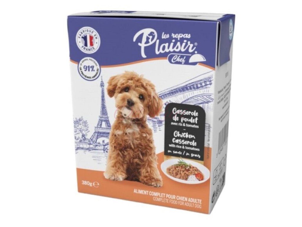 Plaisir Chef Dog Tetrapack Kuře s rýží a rajčaty v omáčce 380g