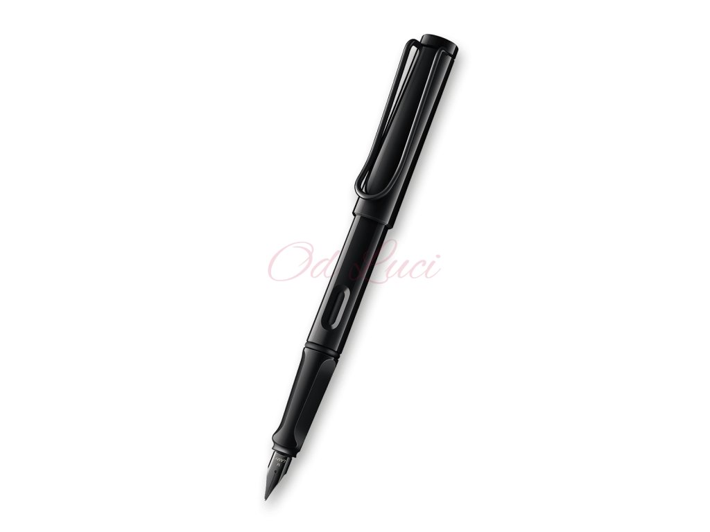 Plnicí pero LAMY safari all black má tělo z tvrzeného ABS plastu, nasazovací víčko a odpružený kovový klip. Úchopová zóna je ergonomicky upravená. Hrot je z nerezové oceli. Charakteristickým prvkem tohoto pera je ozdobný detail v podobě barevných kroužků umístěných na horní části víčka.
