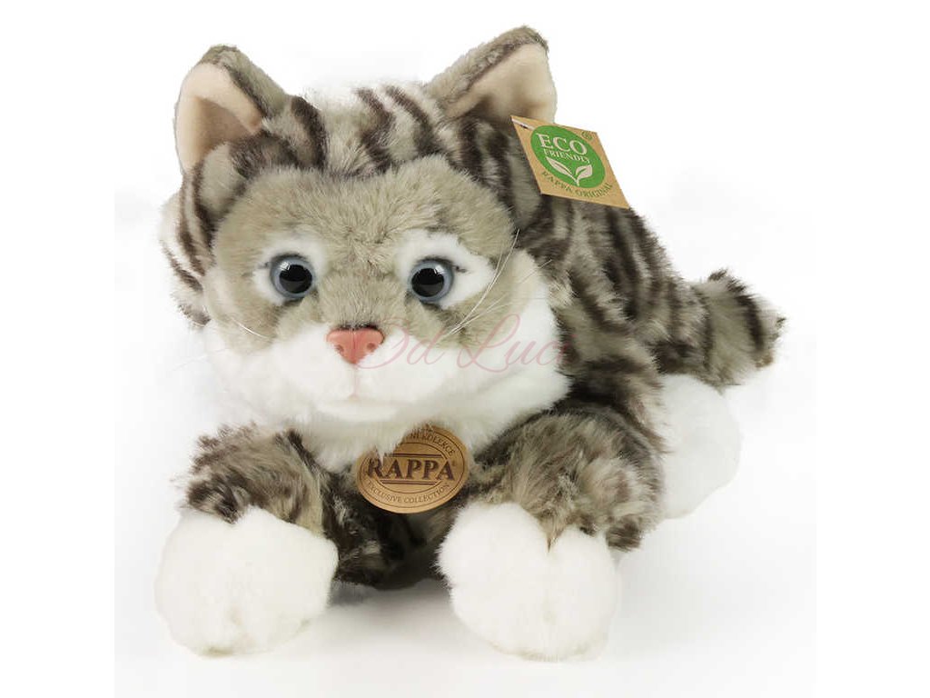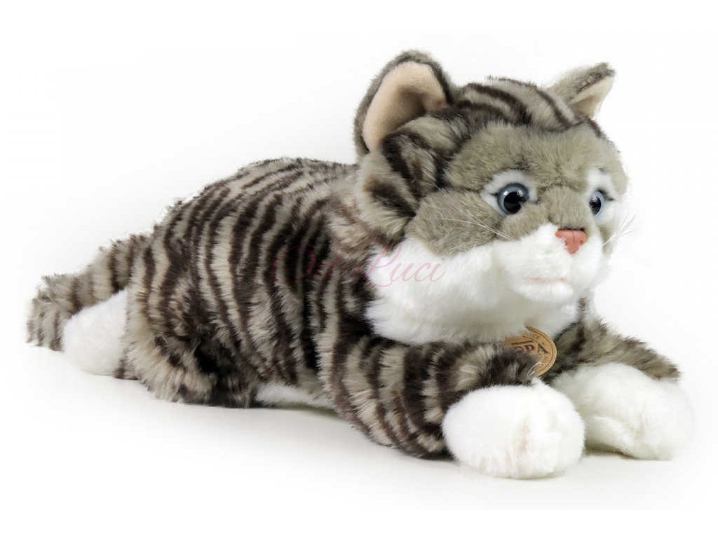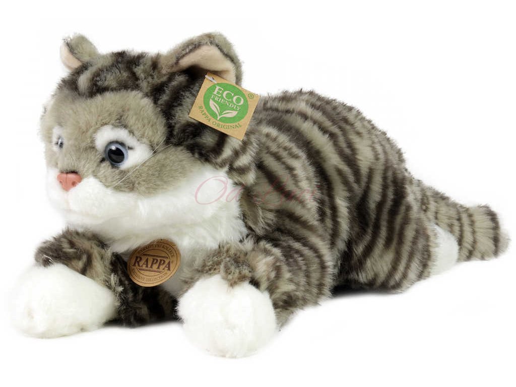PLYŠ Kočka 42cm šedá mourovatá ležící Eco-Friendly *PLYŠOVÉ HRAČKY*