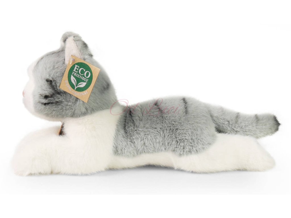 PLYŠ Kočka šedá ležící 20cm mourovaná Eco-Friendly *PLYŠOVÉ HRAČKY*