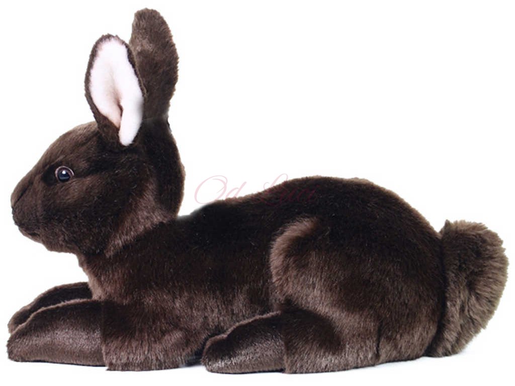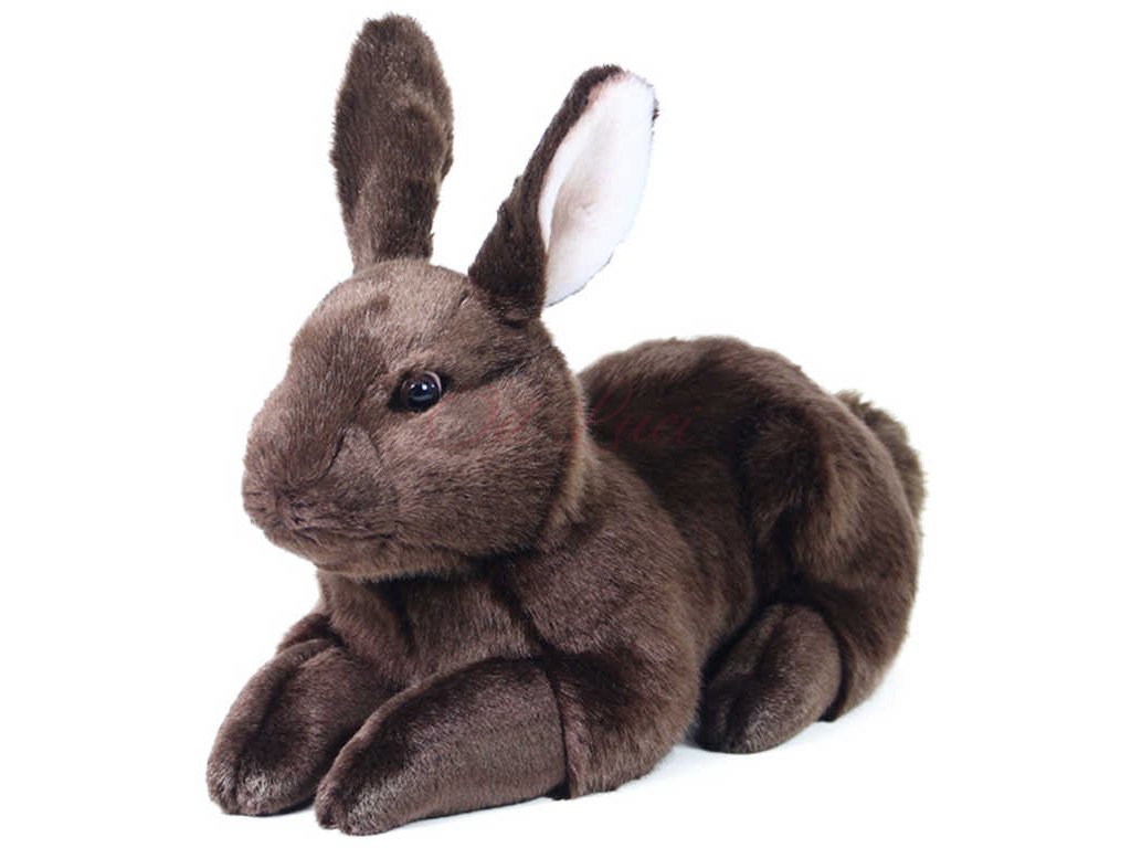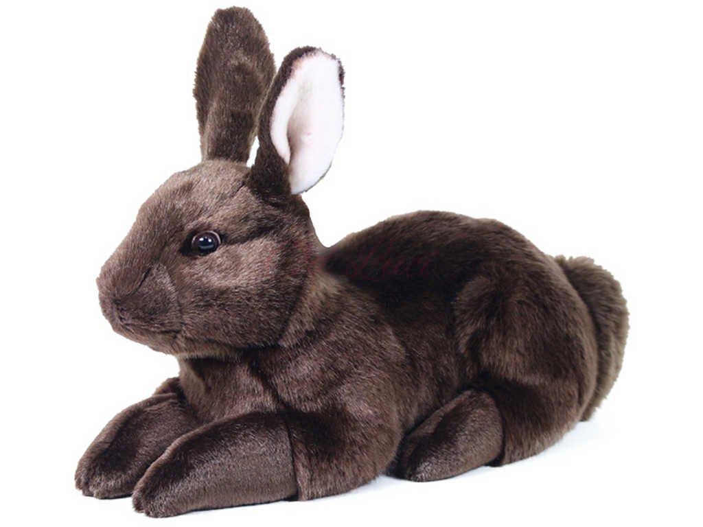 Krásně zpracovaný tmavě hnědý ležící králíček z vysoce kvalitní plyše, s ekologickou výplní uvnitř, králíček ušáček pro všechny milovníky plyšových zvířátek.