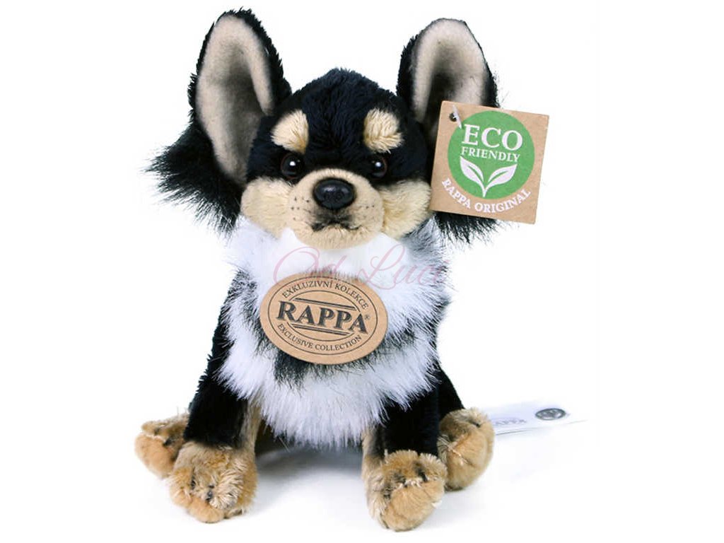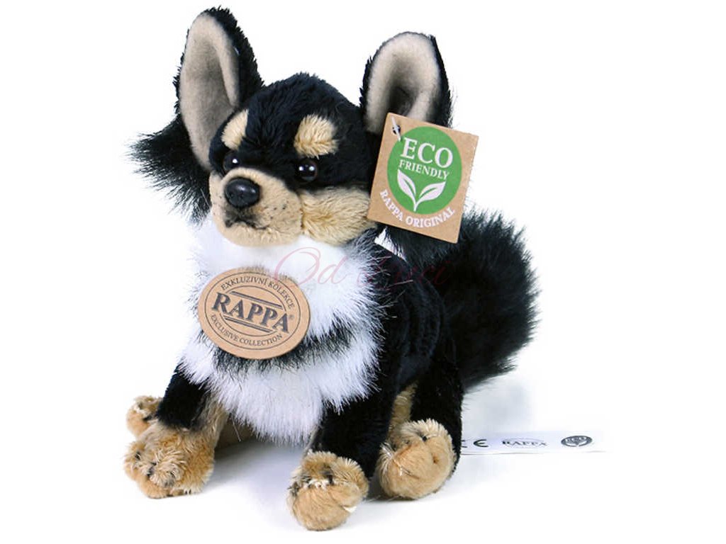 Roztomilý psík čivava z vysoce kvalitní plyše, s ekologickou výplní uvnitř, pejsek pro všechny milovníky plyšových zvířátek.