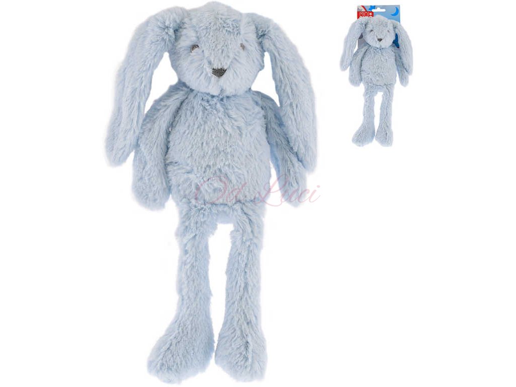 Tento plyšový králíček v modré barvě je vyroben z jemného plyšového materiálu. Je ideální pro malá miminka, ale může být určen pro všechny věkové skupiny. Králík má dlouhé uši a dlouhé nohy. Tento roztomilý zajíc se stane nerozlučným kamarádem vašeho děťátka.