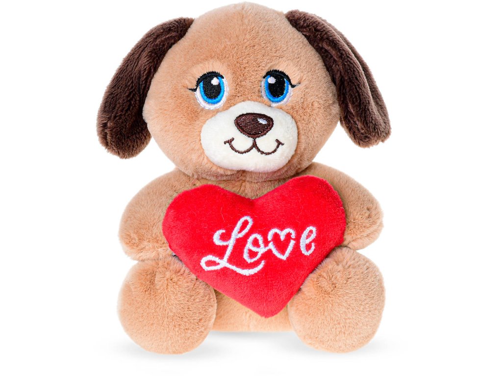 Plyšové zvířátko, sedící plyšák, výrazné oči, srdíčko "Love", 3 varianty, velikost 15cm. Vhodné jako dárek z lásky, pro zamilované, na Valentýna. Pejsek, medvídek, králíček.