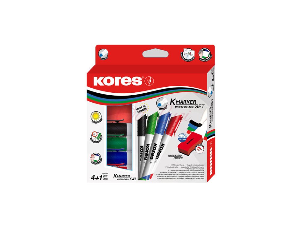 Popisovač Kores K-Marker Wihteboard - sada 4 ks + mazací houba / kulatý hrot