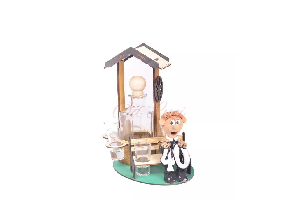 Originální dárek obsahující 6ks panáků a jednu láhev na alkohol. Výrobek je vyroben ze dřeva a obsahuje i keramiku a sklo. Máme více variant tohoto produktu (Pro výročí 30.,40.,50.,60. let)
