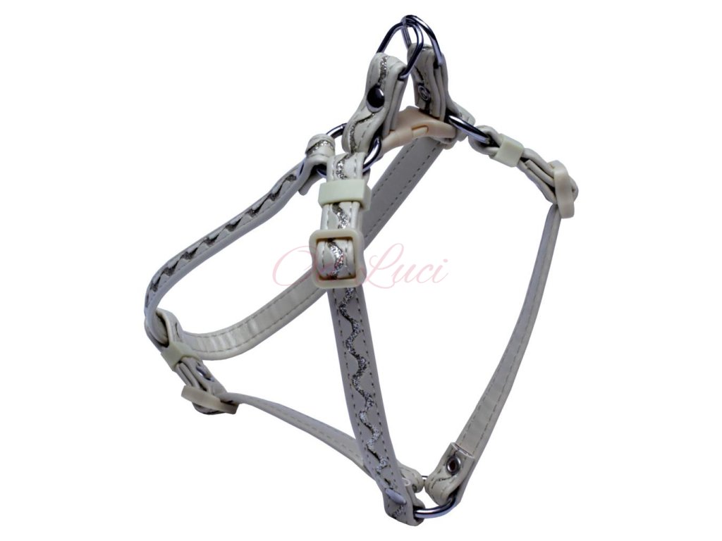 Postroj pro psy malých plemen, zdobený stříbrnou vlnkou