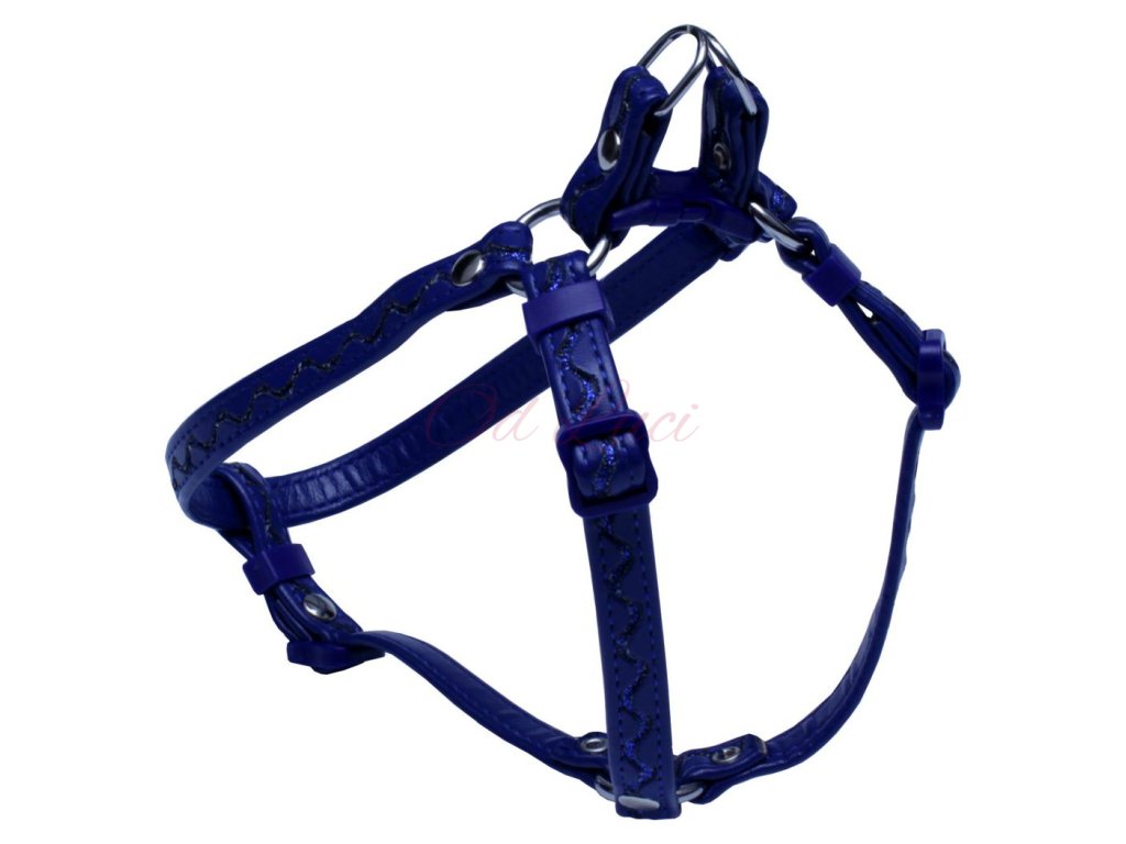 Postroj koženka č.1 stříbrné vlnky - tm.modrý