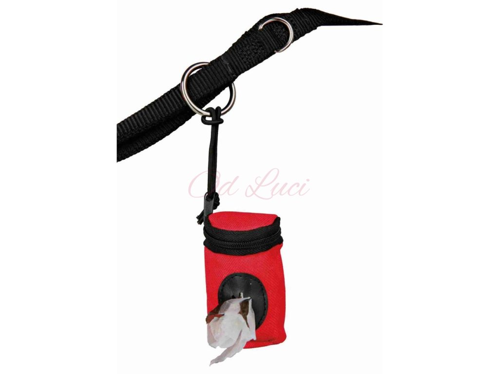 Pouzdro s elastickým poutkem k připevnění např. na vodítko. Snadno naplníte rolí se sáčky a zapnete obvodový zip. Pogumovaný otvor pro snadné vyjmutí sáčku.