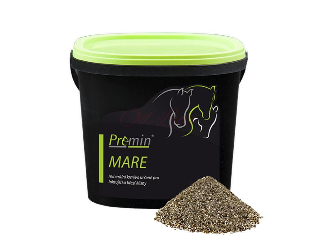 Premin® MARE je minerální krmivo určené pro březí a kojící klisny v zájmovém chovu. Důležité stopové prvky jsou dodány organickou formou pro lepší vstřebávání do organismu. Ostropestřecový expeler má hepatoprotektivní účinky - chrání játra a podporuje jejich správnou funkci. Kvasinky zlepšují stravitelnost živin krmiva a tím příznivě ovlivňují tvorbu a kvalitu mléka klisen a potažmo i optimální vývoj hříběte.
