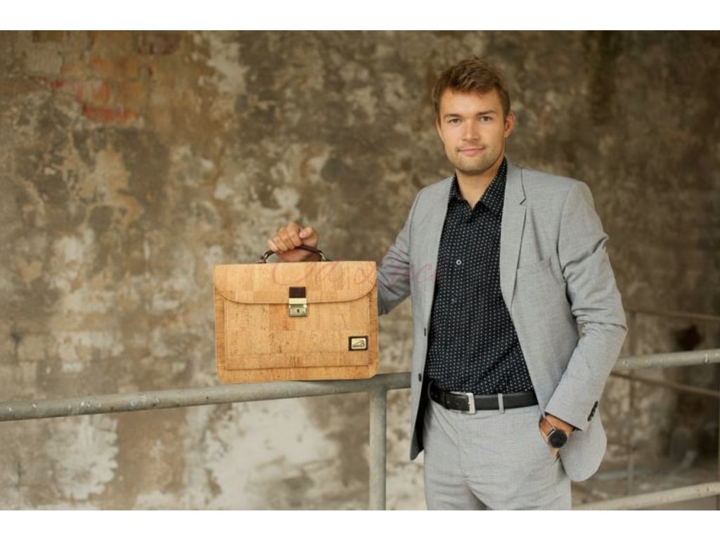 Prestižní portugalská korková pánská aktovka SIMARC přírodní