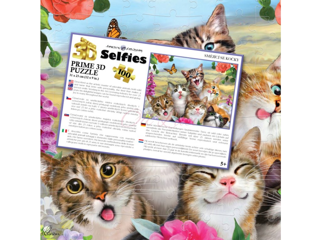3D Puzzle skládačka s motivem "Smějící se kočky (selfie)". Rozměr motivu 31 x 23cm, 100 dílků.
