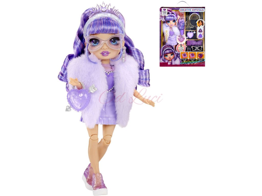 RAINBOW HIGH Creative Crystals - fashion kloubová panenka Violet Willow s česatelnými vlásky, o velikosti 28cm. Součástí módní outfit a doplňky + sada na výrobu doplňků imitujících krystaly.