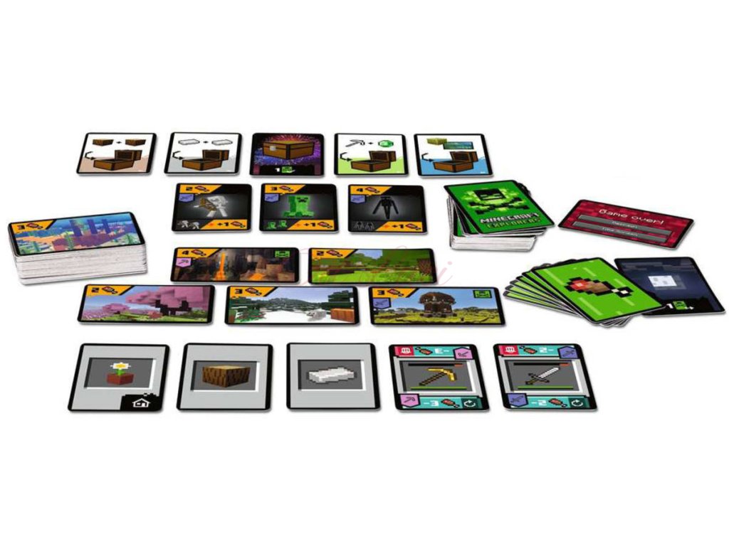 Obsahuje: 30 karet s moby, 60 krajinných karet, 1 kartu Game Over, 12 karet s truhlou, 1 noční kartu, 6 hladových karet, herní pravidla.