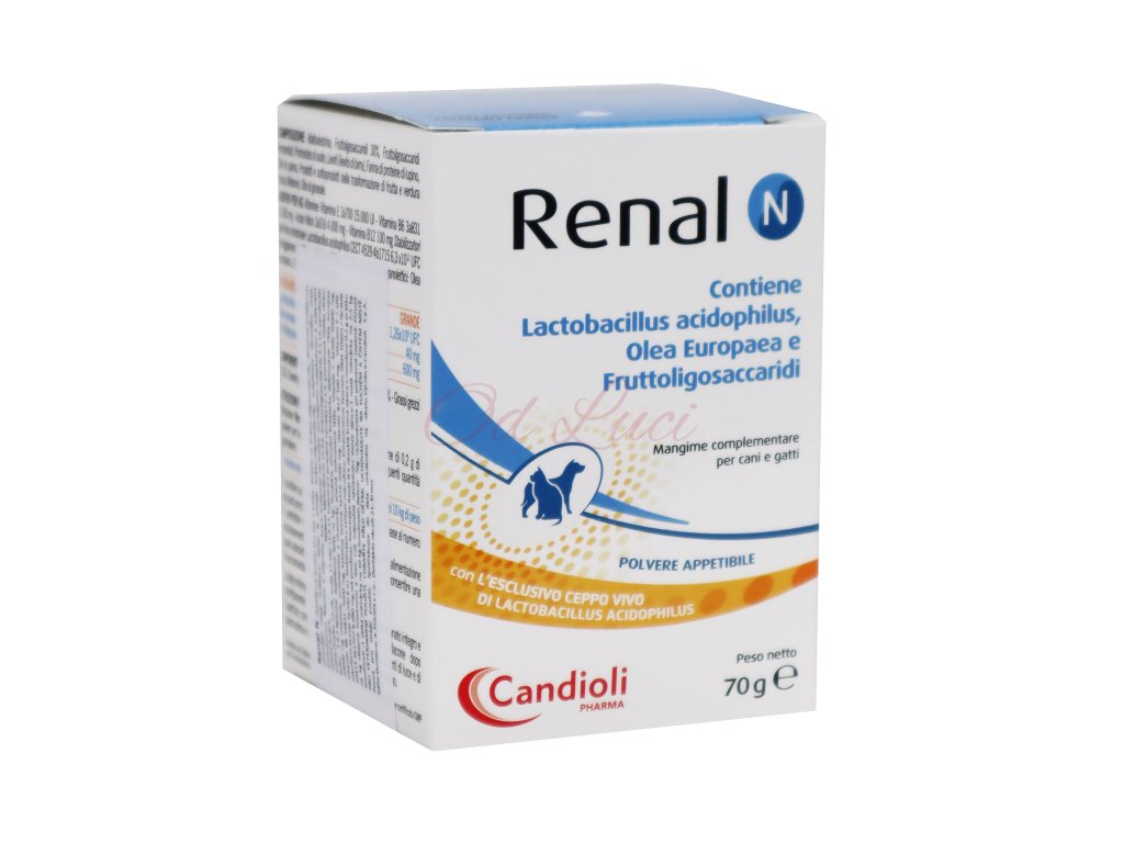 Renal N přináší frukto-oligosacharidy, polyfenoly olivového oleje, Enterococcus faecium a vitamíny, které prospívají zachování normálního metabolismu a adekvátní střevní funkce.