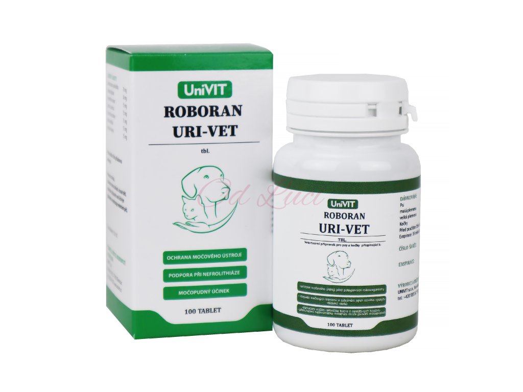 ROBORAN URI-VET tbl. je schválený veterinární přípravek, který podporuje funkci ledvin a močových cest nejen v případě chronického renálního selhání. U zvířat předchází nadměrné koncentraci moče a zamezuje vzniku močových kamenů. Dále chrání močové cesty před patogenními mikroorganismy. Přípravek se používá jako podpůrný prostředek při prevenci a léčbě infekcí močového systému, zánětů močovodů, močového měchýře a močové pánvičky.