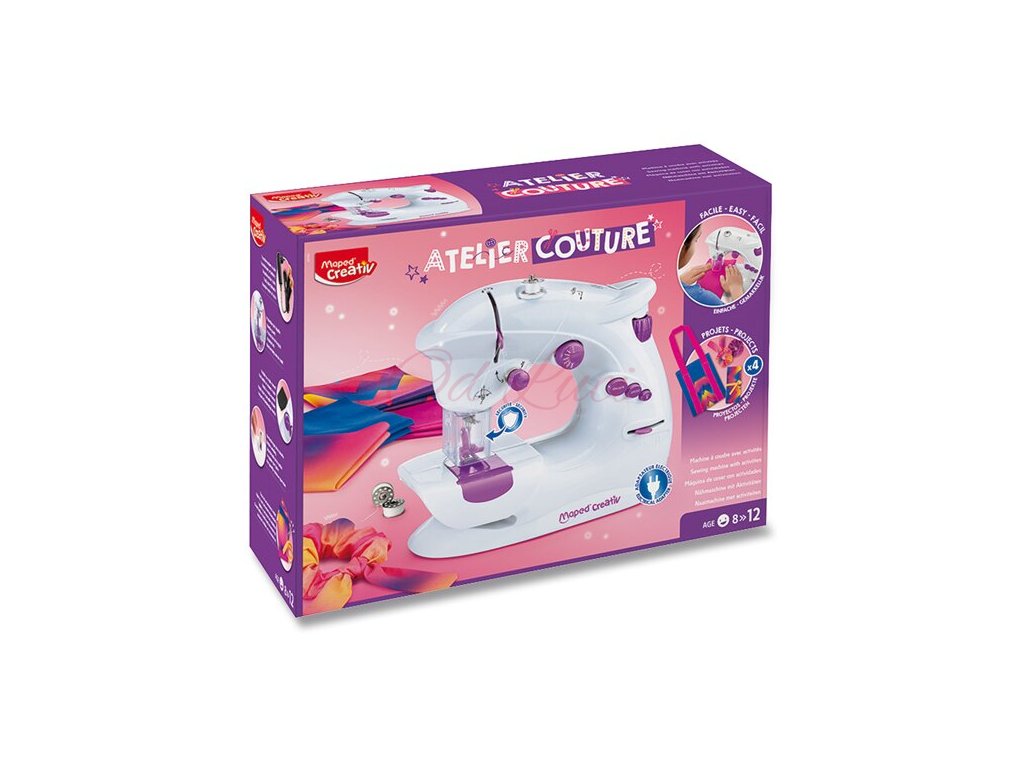 Startovací šicí stroj Maped Creativ Atelier Couture pro malé švadlenky s jednoduchým a bezpečným mechanismem. Tento šicí stroj je ideální příležitostí pro děti, aby objevily první kroky v šití. Startovací šicí stroj má vlastnosti opravdového šicího stroje: nožní ovládání, systém navíjení cívky, kovové cívky. Nožní pedál na baterie nebo do sítě. Díky plné sadě příslušenství je možné rovnou začít s kreativní tvorbou vlastních výtvorů.