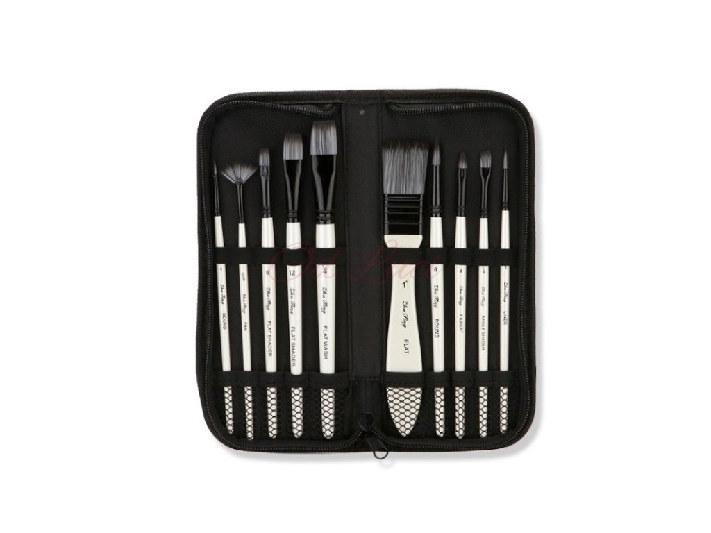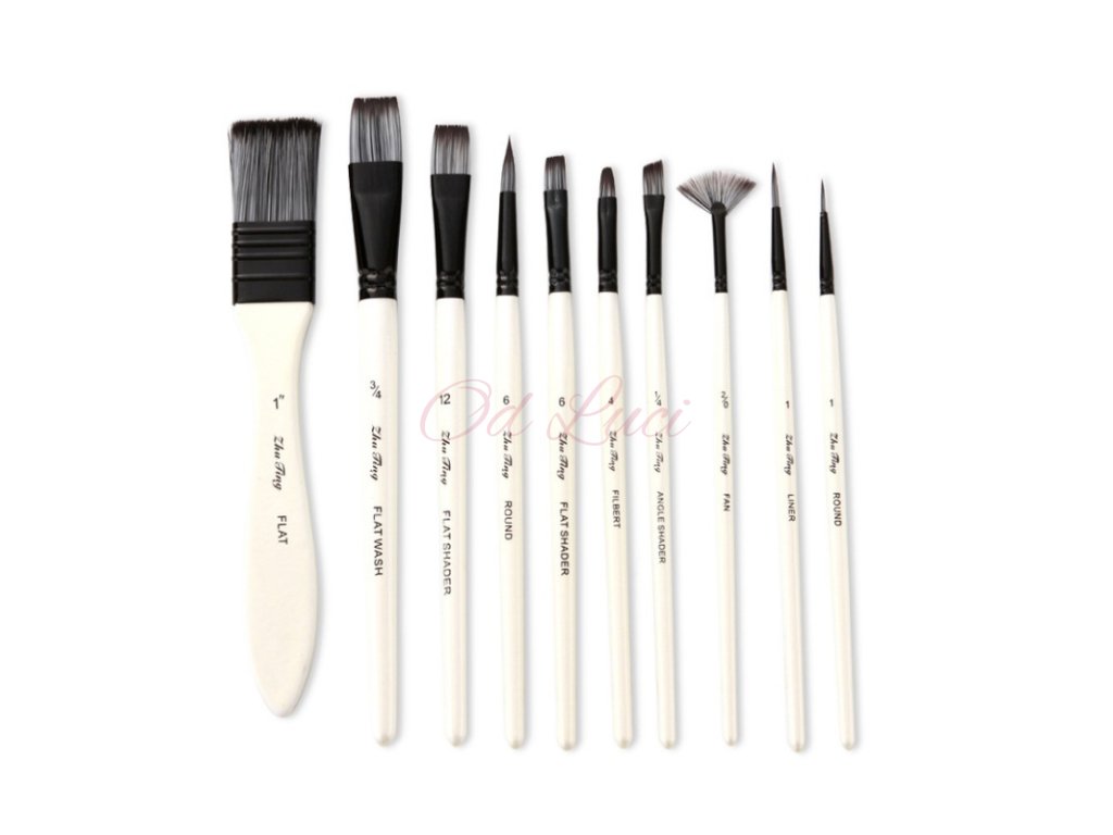 Kompletní 10 ks sada nylonových malířských štětců, které jsou vhodné pro akrylové, olejové i akverelové barvy.