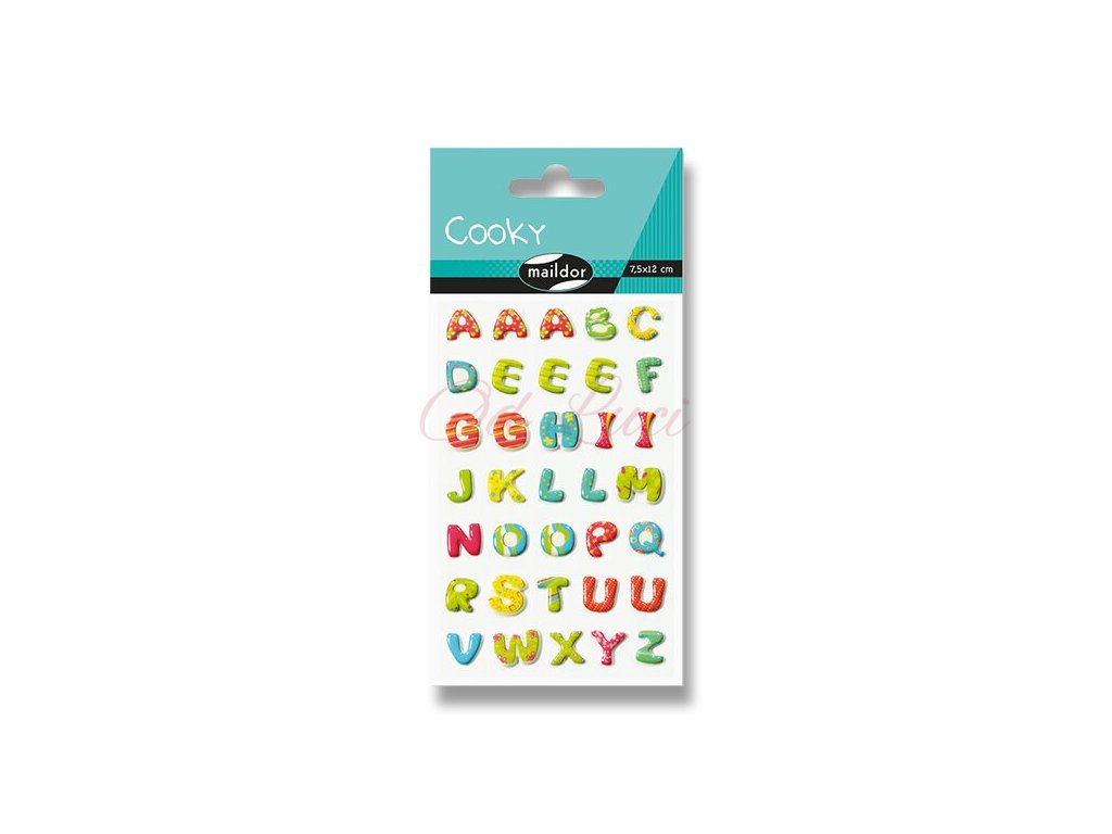 Samolepky Maildor 3D Cooky s motivy písmen a s efektem 3D. Balení obsahuje 1 arch s 35 samolepkami.