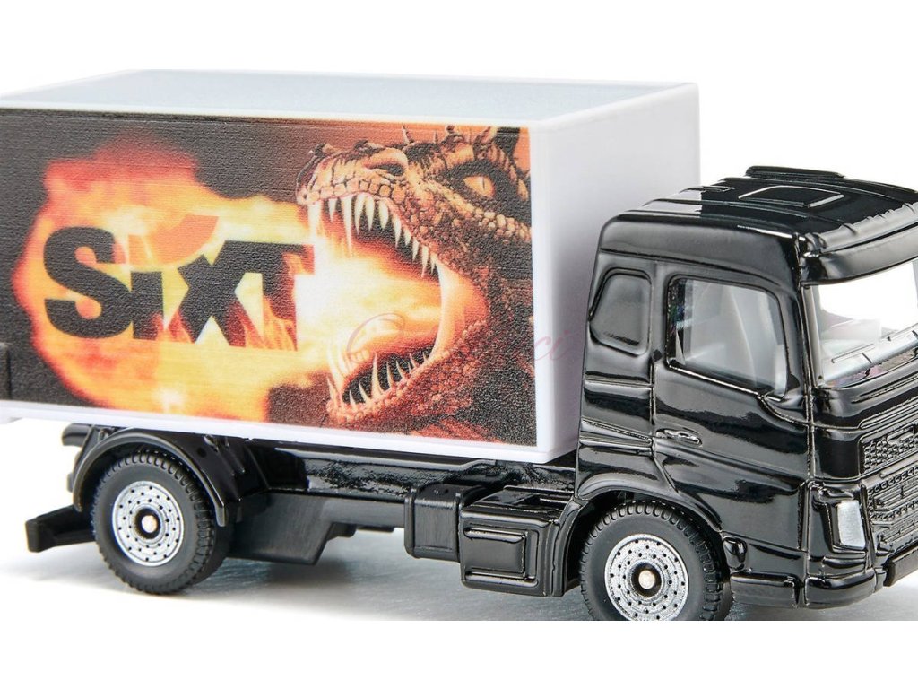Chystá se stěhování? Nebo je možná auto příliš malé na přepravu obzvláště objemných předmětů? Žádný problém – do půjčovny Sixt se skříňovou nástavbou se vše vejde! Kovová kabina řidiče je lakována černě a je posazena na dvounápravovém plastovém podvozku s volně pojezdovými koly. Pro nakládání a vykládání kamionu lze otevřít zadní klapku skříňové nástavby. Obrovská dračí hlava po stranách je skutečným poutačem, jeho oranžovo-žlutý oheň obklopuje nápis „Sixt“.