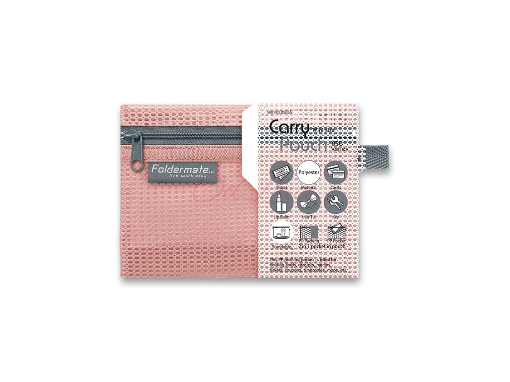 Síťovaná plastová obálka Foldermate Pop Gear pro ukládání dokumentů. Uzavíratelná umělohmotným zipem. Vnější materiál odolná tetoronová síťovina, vnitřní podšívka z voděodpudivého materiálu udrží věci suché. Rozšiřitelná spodní základna zvyšuje kapacitu. Postranní poutko pro uchycení. Formát Mini (14 x 10,5 cm).
