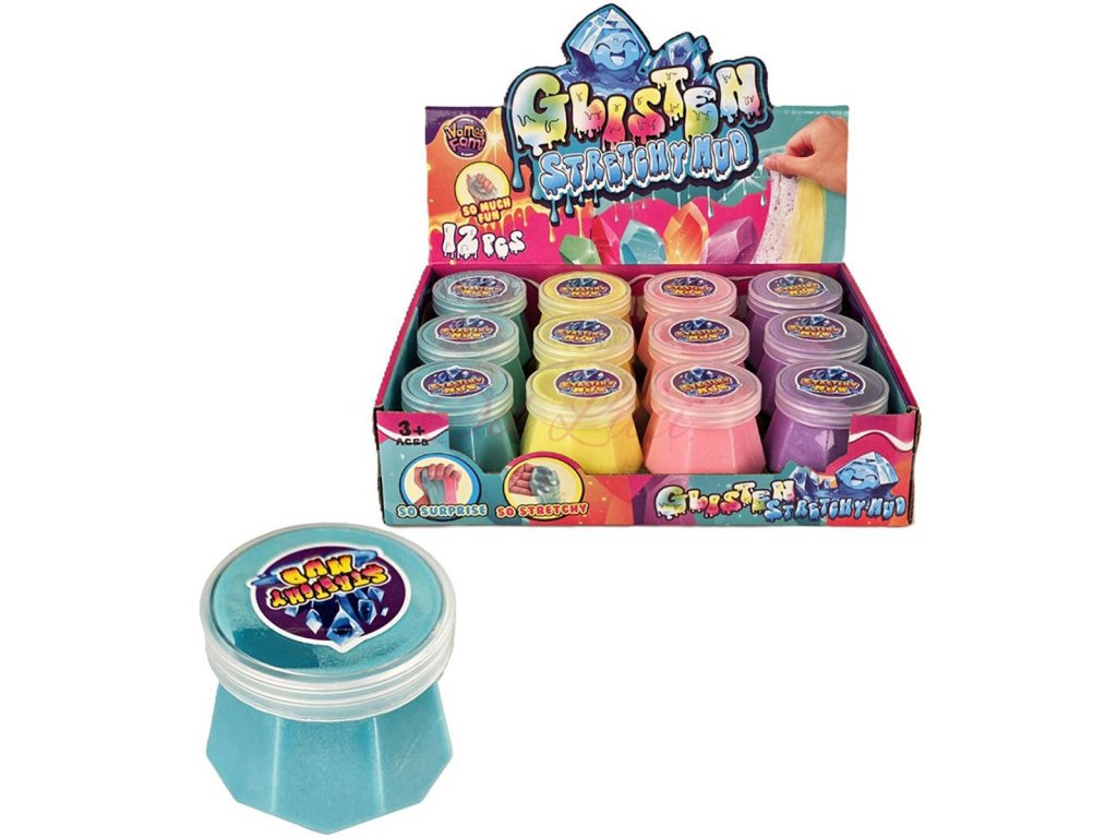 Sliz Glisten Stretchy Mud je zábavná barevná hmota v dóze, kterou můžeš různě mačkat, natahovat a hníst rukama. 4 barevné varianty.