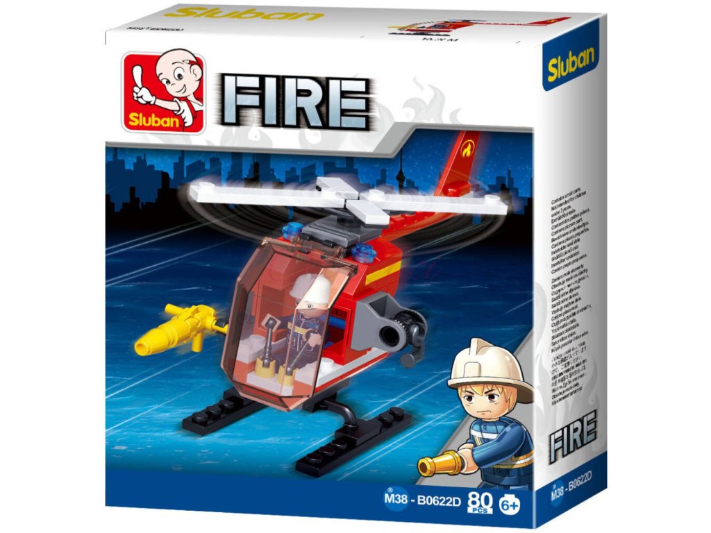 SLUBAN Fire (M38-B0622D) Hasičský vrtulník. Kvalitní plastová stavebnice. Lze kombinovat s většinou ostatních známých stavebnic. Součástí 1 figurka.