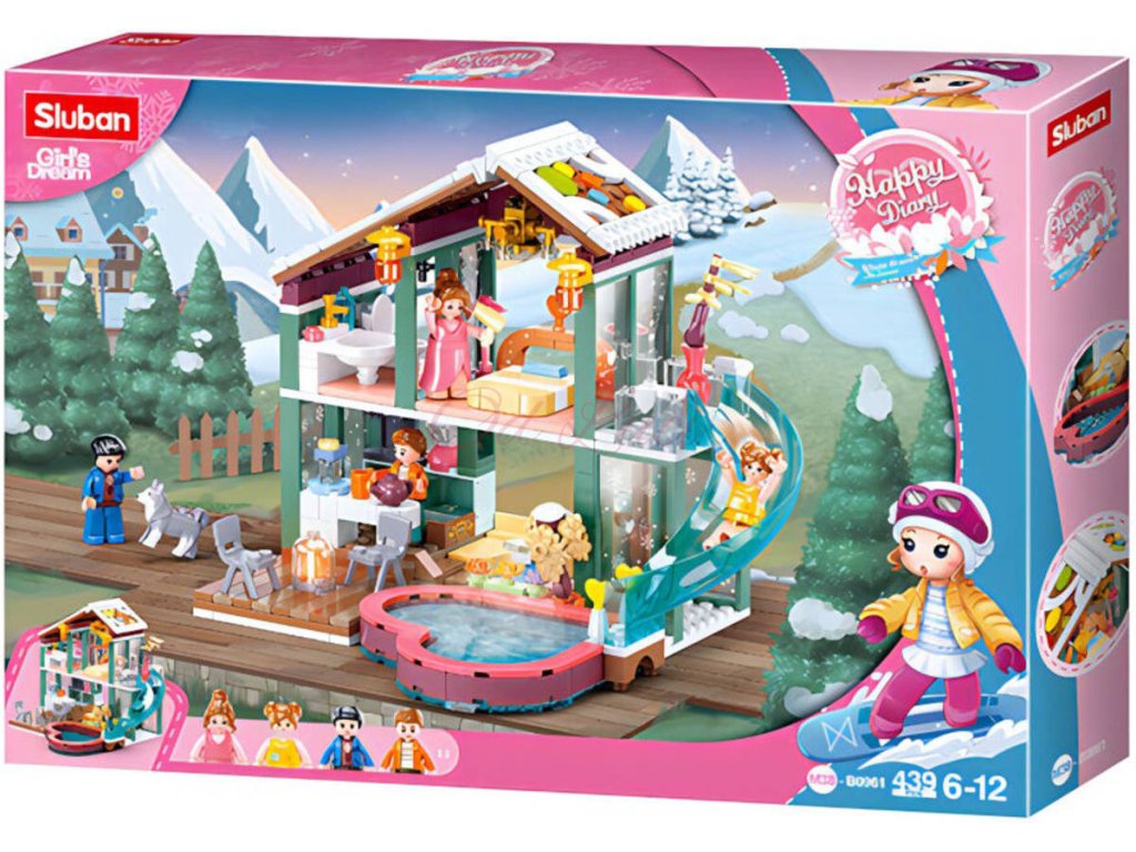 SLUBAN Girls Dream (M38-B0961) Chata na zimní dovolenou. Kvalitní plastová stavebnice. Lze kombinovat s většinou ostatních známých stavebnic. Součástí 4 figurky.