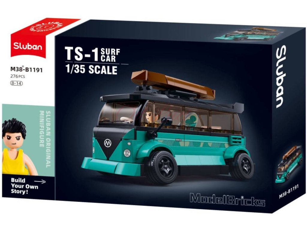 SLUBAN Model Bricks (M38-B1191) Surfařský vůz TS-1. Kvalitní plastová stavebnice. Lze kombinovat s většinou ostatních známých stavebnic. Obsahuje 276 dílků + 1 figurku. Surfařský vůz nadchne každého fanouška moře a vodních sportů.